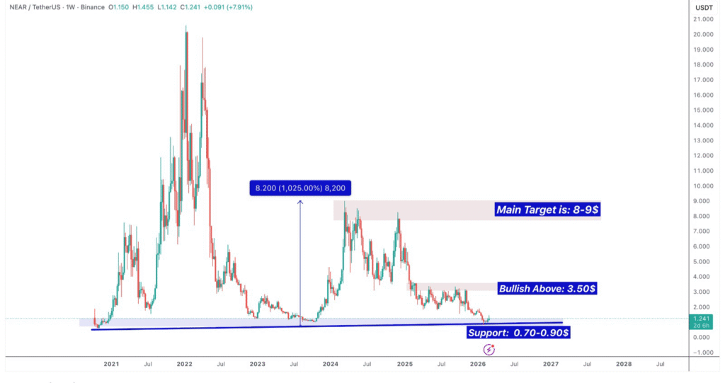 The Near Coin price prediction highlights that the most important level for investors to watch is the Support: 0.70-0.90$. If the price remains above this range, the technical projection points toward a massive recovery. Once the price moves Bullish Above: 3.50$, the path toward the Main Target is: 8-9$ becomes much clearer. You should keep an eye on the Near Coin price today, as staying within the current channel suggests the accumulation phase is still healthy.